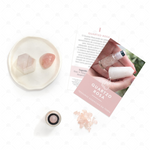 Along with the Rose Quartz gemstone rollerball, this set also comes with a 10ml clear roller bottle adorned with a premium aluminium co-ordinated cap, which is approximately 1/3 full of Rose Quartz gemstone chips. This set is accompanied by an individual instructional card detailing the wellness and emotionally supportive areas that this gemstone can support with suggested essential oils to compliment its use.