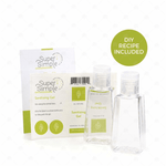 From the "Super Simple" range of products, we have this DIY set containing the flip-top bottles, labels, and recipe to enable you to create in the comfort of your home 2 bottles of Sanitising Gel from all ingredients and essential oils.