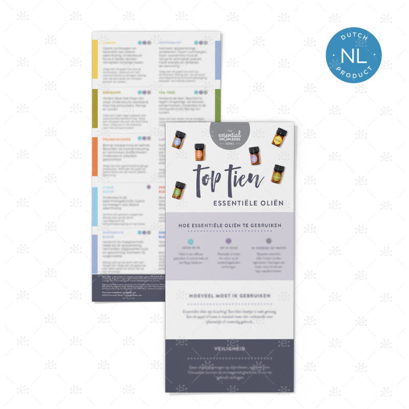 Part of the "Essential Knowledge Series", this rack card is an ideal quick reference guide containing an overview and suggested uses of the top ten essential oils. These cards are perfect companions to your reference tools and guides.