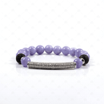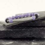 This beautiful bracelet is adorned with light amethyst gemstone beads along with lava beads both with the ability to support and enhance your well-being. The bracelet is elasticated, and accented with a stainless steel diamonte bar.