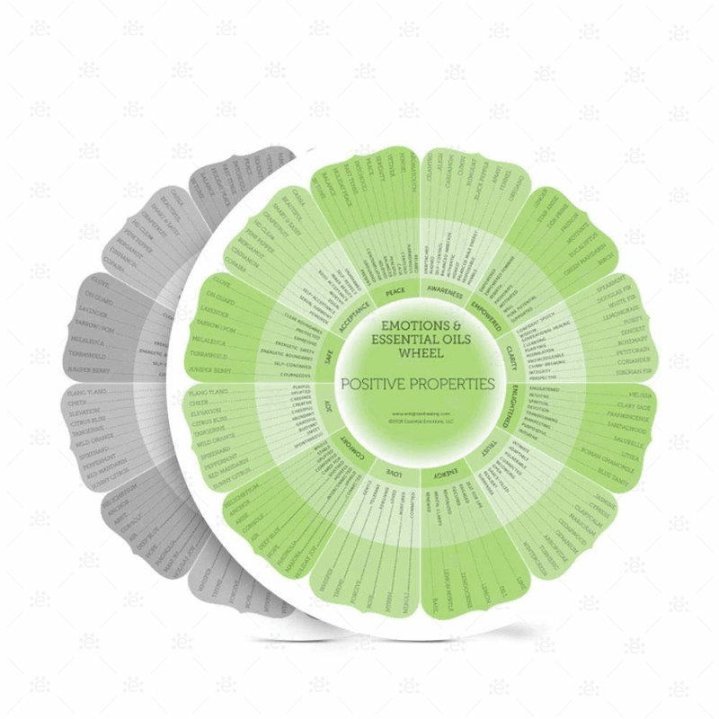 The Essential Emotion Wheel, new for 2021, contains both positive and negative terms for each single and blended essential oil, as described in Essential Emotions book. It’s a beautiful quick reference resource you’ll turn to often, laminated on both sides for durability and frequent usage.