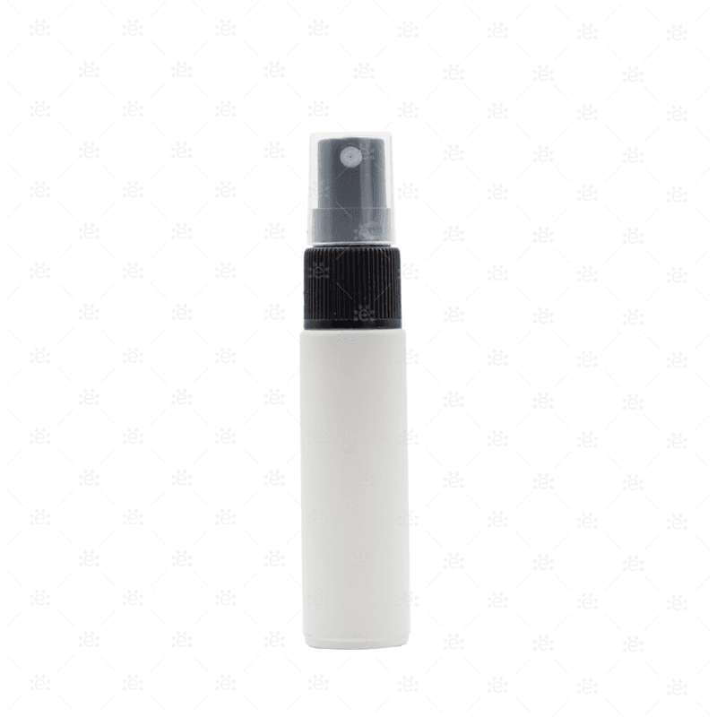 Contents: 5 x 10ml White Matte Spray Bottles with black fine misting spray tops and clear plastic caps.