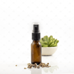 This 15ml amber glass bottle comes with a black pump mist spray head and clear plastic cap for protection.