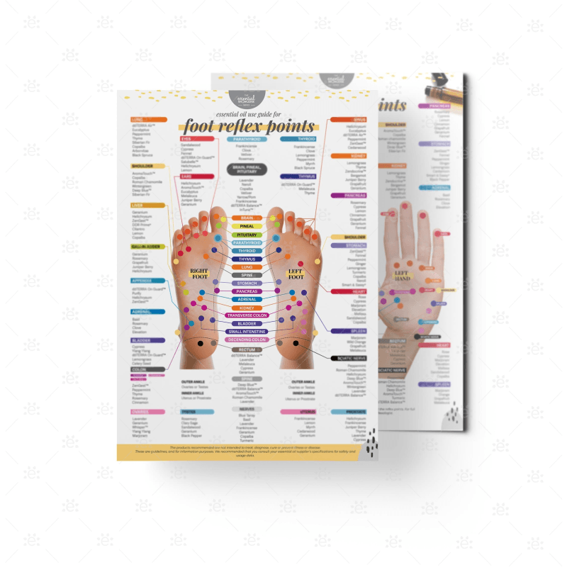 Part of the Essential Knowledge Series, this double sided comprehensive foot and hand reflex point guide will aid you in selecting which oils to use on reflex points on both feet and hands.