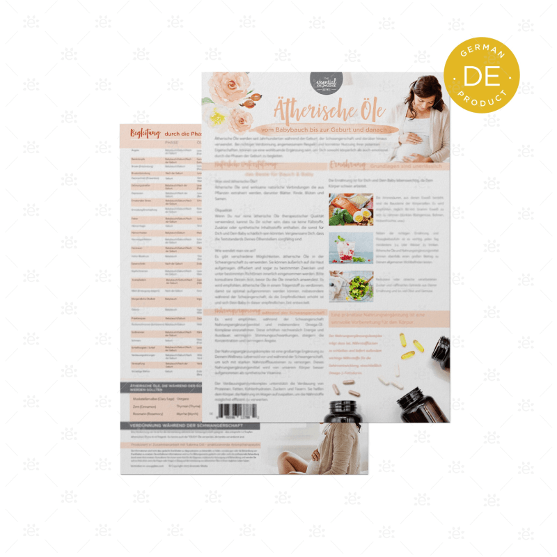 This tear pad, now available in GERMAN, discusses natural support and what essential oils are, oil quality and how to use them. There's a section on supplements during pregnancy and the importance of nutritional foundations.