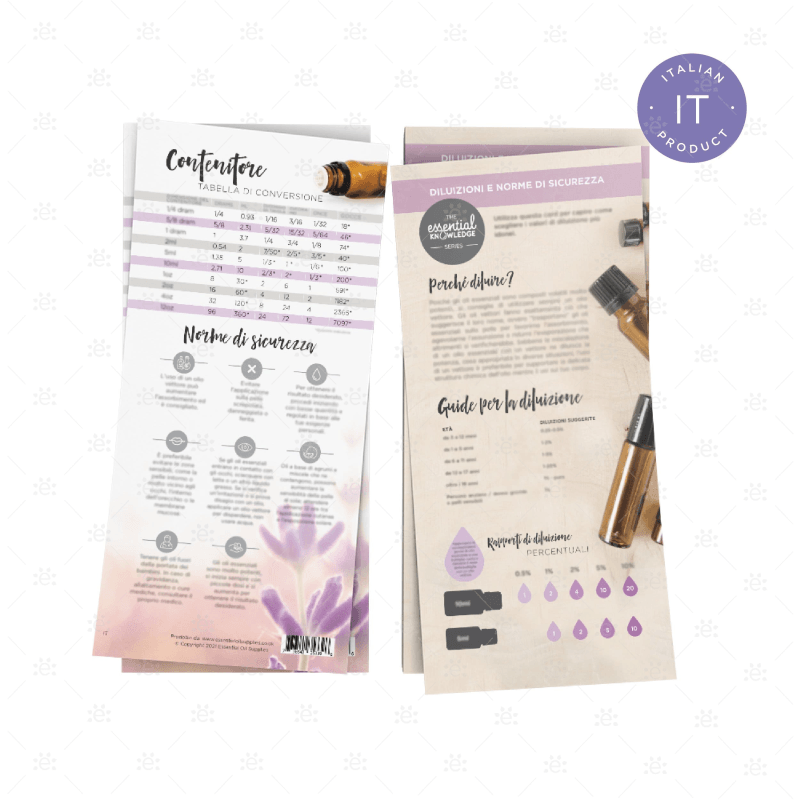 Part of the "Essential Knowledge Series", this rack cards is and ideal quick reference guide containing nationally recognised guidelines for using essential oils. It contains a brief overview as to why dilution is important, conversion ratios for varying age ranges, capturing dilution guidelines, safety information and a conversion table to enable you to quickly see how to convert drams, drop, ml, oz, tbsp and tsp.