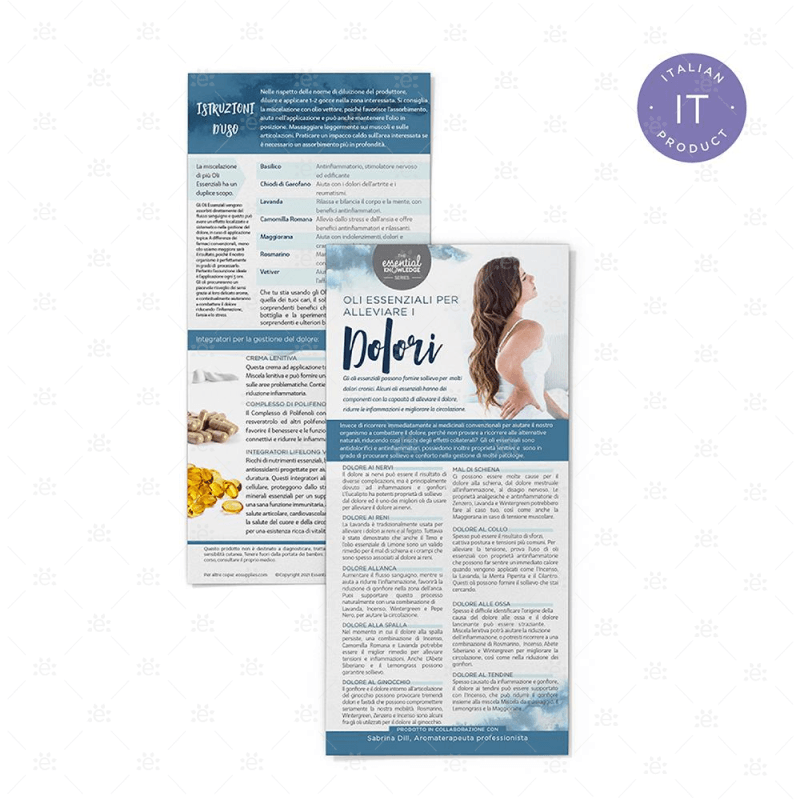 Part of the "Essential Knowledge Series", these ITALIAN rack cards are an ideal quick reference guide containing suggested essential oils and blends to use for supporting varying pain and discomfort complaints.