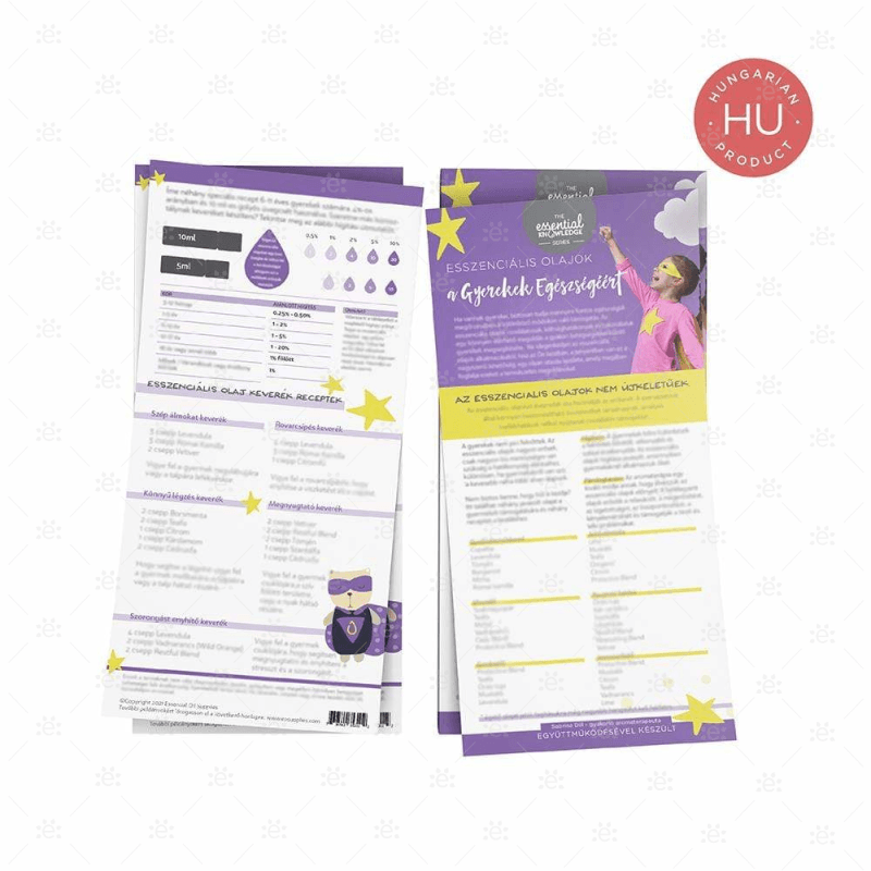 If you have children you'll know just how much they often require support to maintain good health. This rack card, in HUNGARIAN, part of the "Essential Knowledge Series" and produced in conjunction with Sabrina Dill - Practicing Aromatherapist, is an ideal reference guide containing suggested essential oils and blends to use for supporting children with everyday wellness.