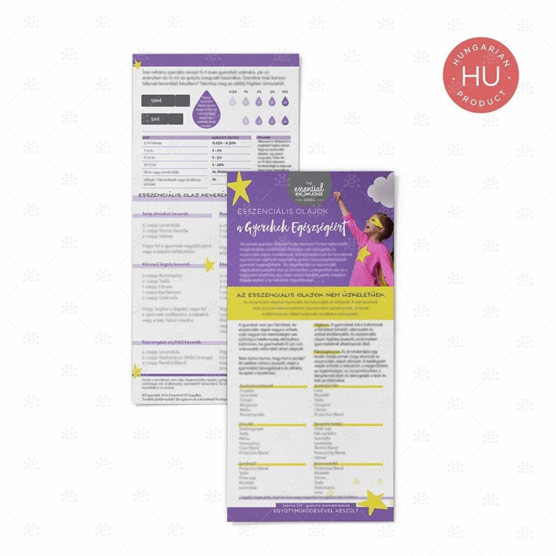 If you have children you'll know just how much they often require support to maintain good health. This rack card, part of the "Essential Knowledge Series" and produced in conjunction with Sabrina Dill - Practicing Aromatherapist,  is an ideal reference guide containing suggested essential oils and blends to use for supporting children with everyday wellness. - HUNGARIAN