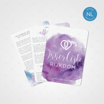 Contents: DUTCH: Set of 30 emotions & essential oils affirmation cards, 3 instructional cards and 4 roller bottle labels (2 x 10ml and 2 x 5ml) with cap stickers. Bottles and amethyst chips for illustrative purposes only.