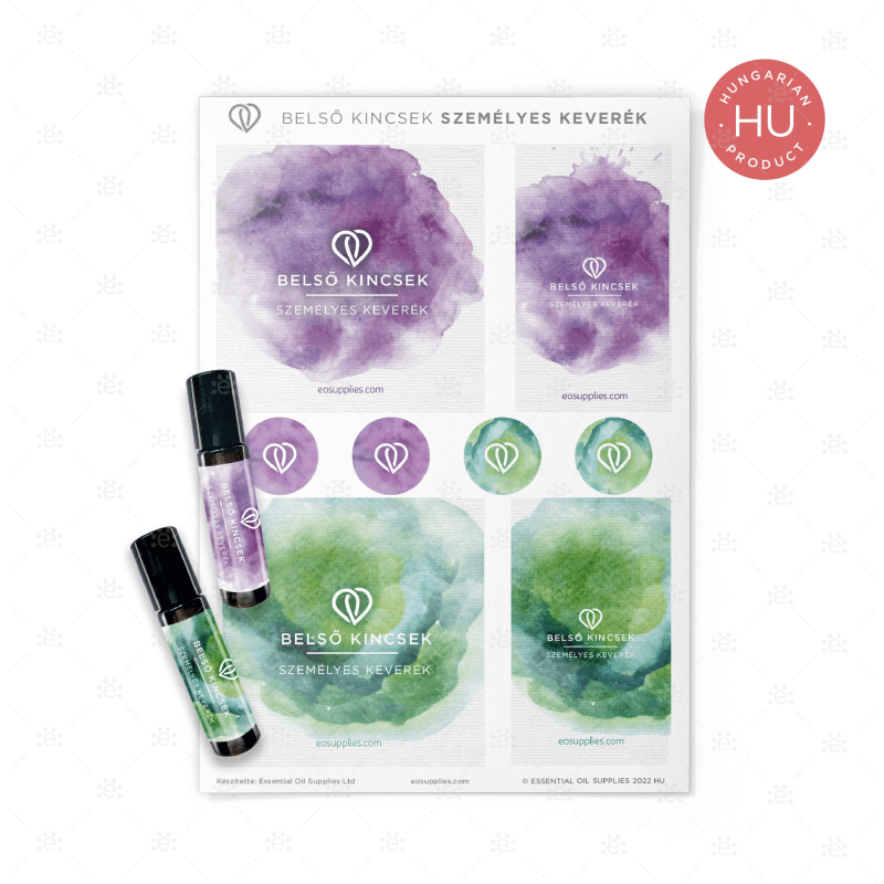 Contents: 4 roller bottle labels (2 x 10ml and 2 x 5ml) with 4 cap stickers - HUNGARIAN