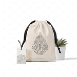 These cream cotton bag are tied with black grosgrain ribbon to compliment the naturally inspired design, and are accompanied with a matching gift tag on which you can write a peronalised message.