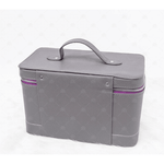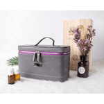 This luxurious grey faux leather and fuchsia velvet case features 2 stackable trays. Each tray holds 28 standard vials and 4 roller bottles in their own compartments. Plus, inside the lid, 9 mesh pockets store your most-used roller bottles too for easy access.