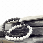 This bracelet set of two will bring forth calm and peace into your life with the soothing and calming properties of Howlite and Lava stones. This is a perfect his & hers companion set, or wear personally as they are or together.